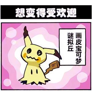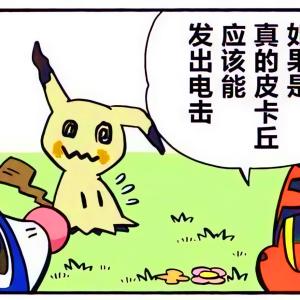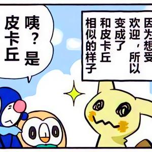 谜拟Q 披着破布,想要变得像皮卡丘一样受欢迎,小伙伴们说真正的皮卡丘会电击,于是,谜拟Q 用颜料伪装电击吓跑了小伙伴。