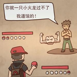 Red 挑战关都地区深灰道馆的小刚,可是他只有一只小火龙,小刚说:你就一只小火龙过不了我道馆的。岩石系的道馆需要水系精灵啊!