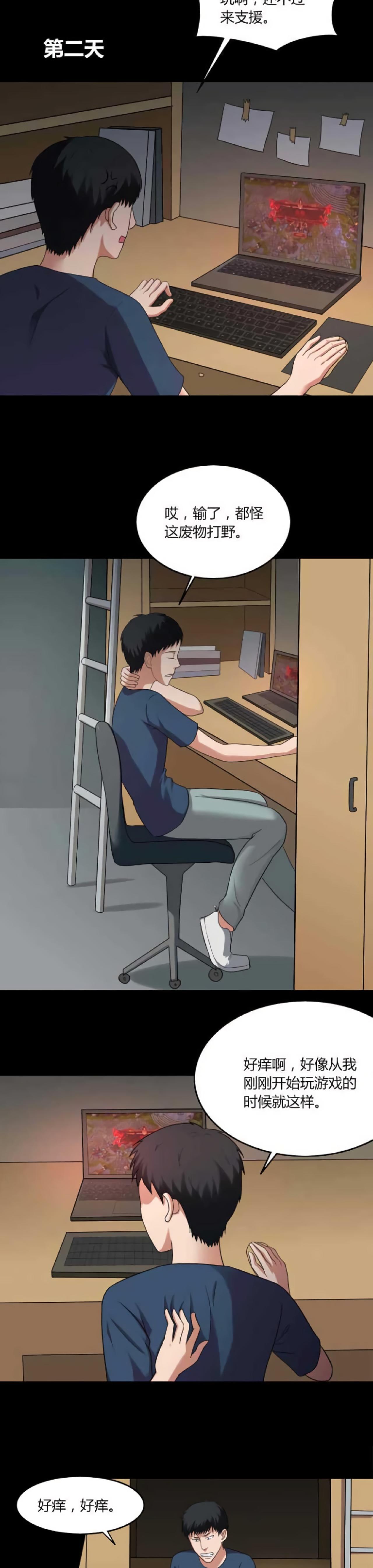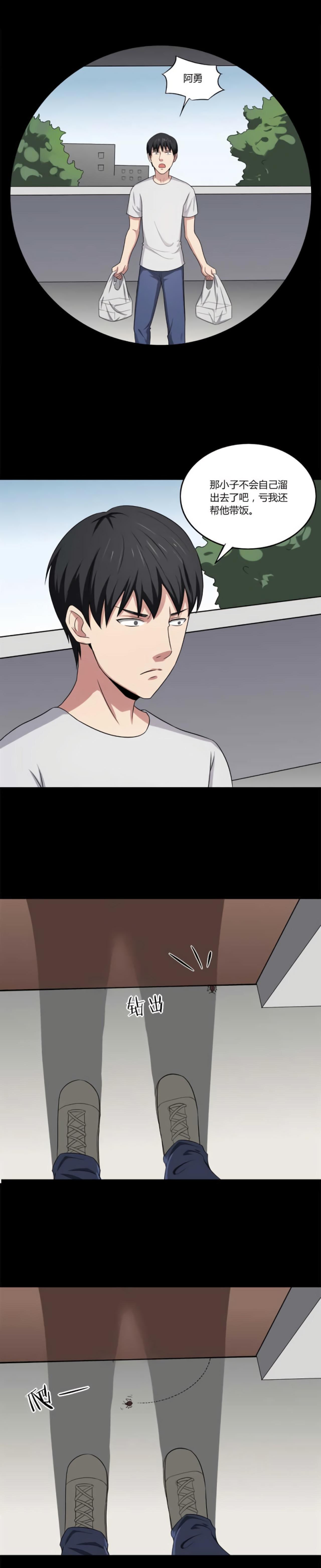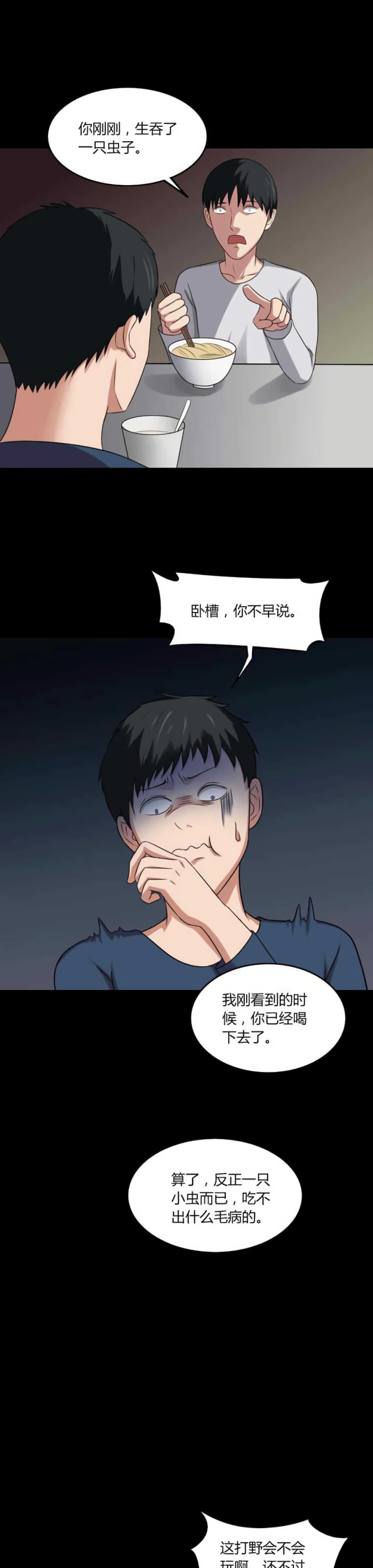 吃饭的时候,阿勇只顾着看手机,吞了一只虫子。过了好几天,阿勇感觉后背很痒,痒的感觉越来越强烈,阿勇只能让舍友帮忙带饭。当舍友回宿舍时,看到了可怕的场景。一只小虫子引发的校园恐怖事件。