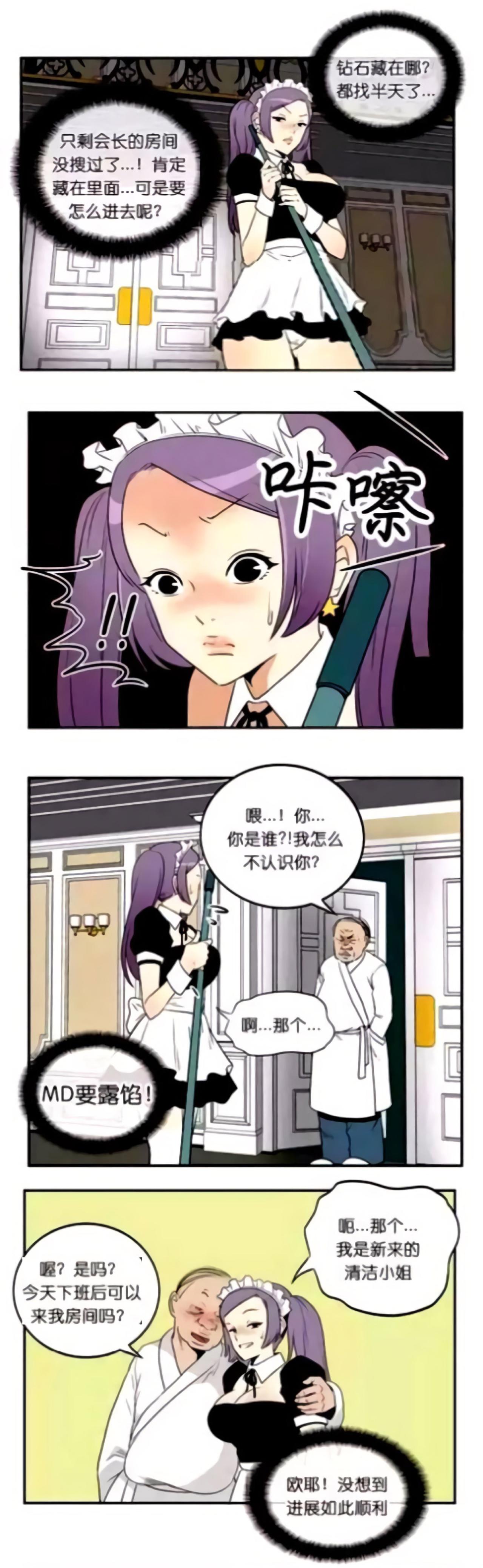 1颗7亿元的钻石将XX会场拍卖,美女大盗看到了这个消息,决定以清洁女仆的身份潜入会长房间,被会长看中,将会长灌醉后,美女大盗想要寻找钻石,却看到桌上有一封信,里面还有10亿元支票,于是美女大盗从此改邪归正了。