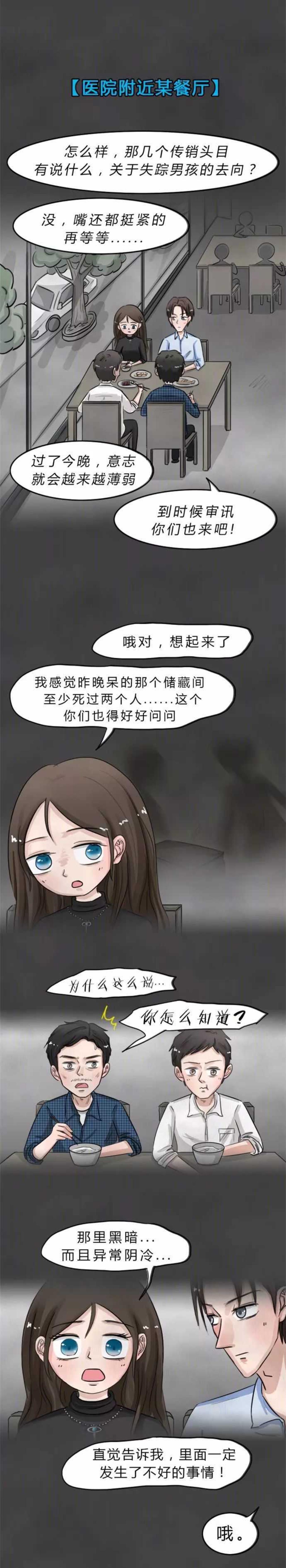 小蓝卧底出来以后,在医院照看同事,警方帅气的于队长请小蓝配合调查,在调查过程中,意外发现传销与失踪案存在关联。小蓝在医院陪护时,突然做了一个噩梦,噩梦将小蓝指引到了医院的地下室。当小蓝和于队长来到医院地下室时,却发现这里大门紧锁。