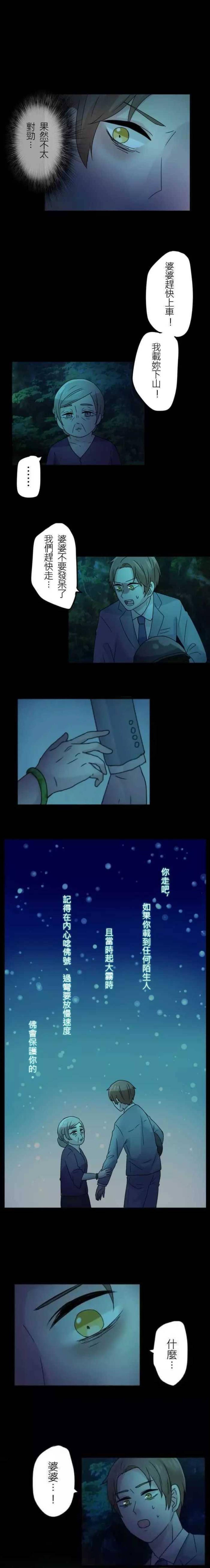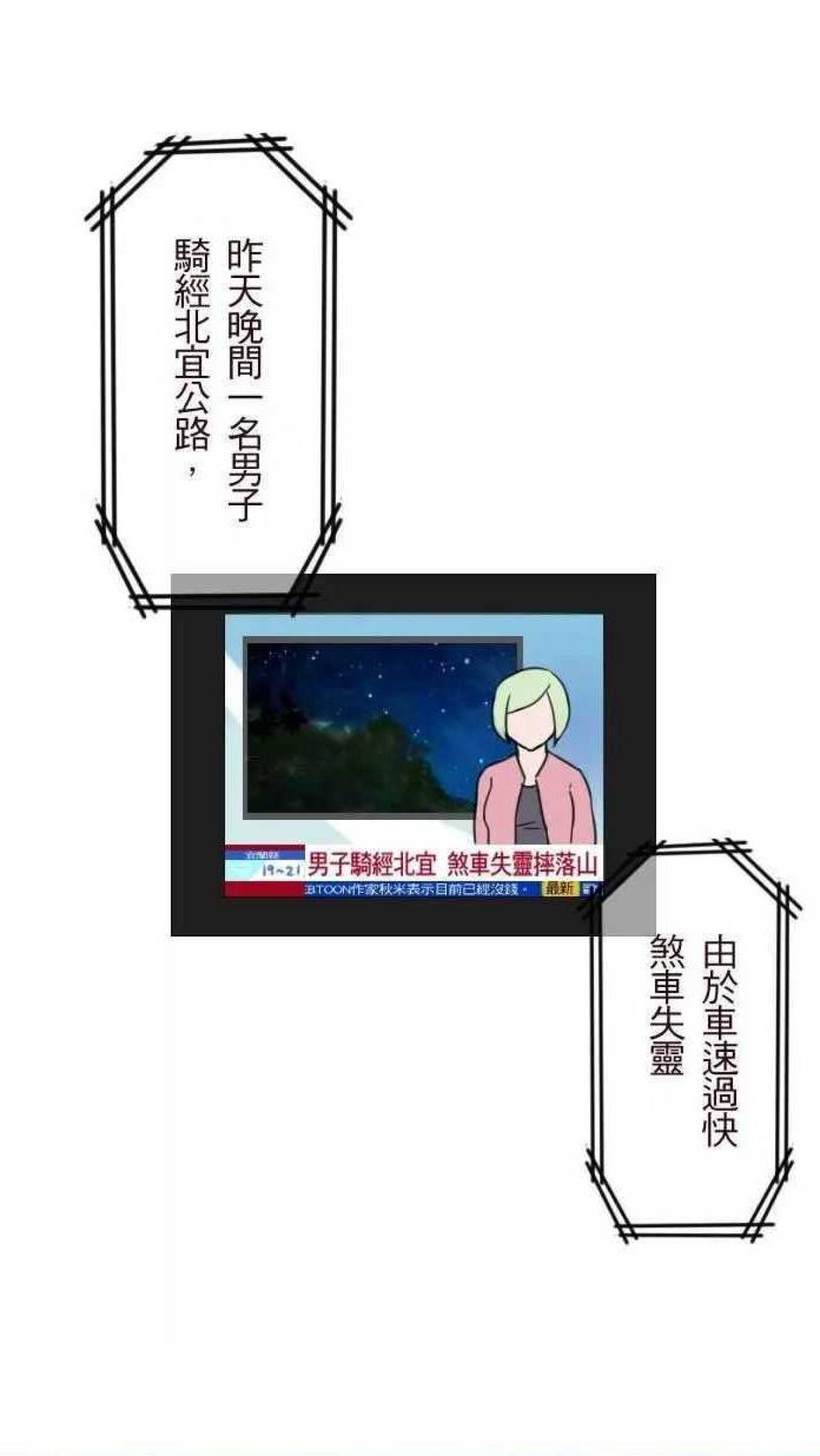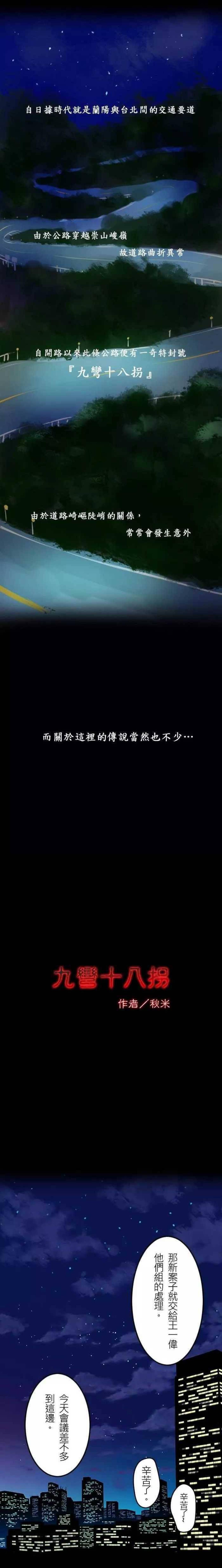 位于台北的北宜公路,续往宜兰所经之金面山路段因下山的山路曲折,素有“九弯十八拐”之称,由于道路线型崎岖视线不良,早年因重大事故频繁而被认为是不洁之地,甚至有过往车会洒冥纸以慰亡魂的习俗。漫画的男主角心地善良,在北宜公路上遇到了老婆婆,想帮助婆婆下山,却不知危险正在降临。