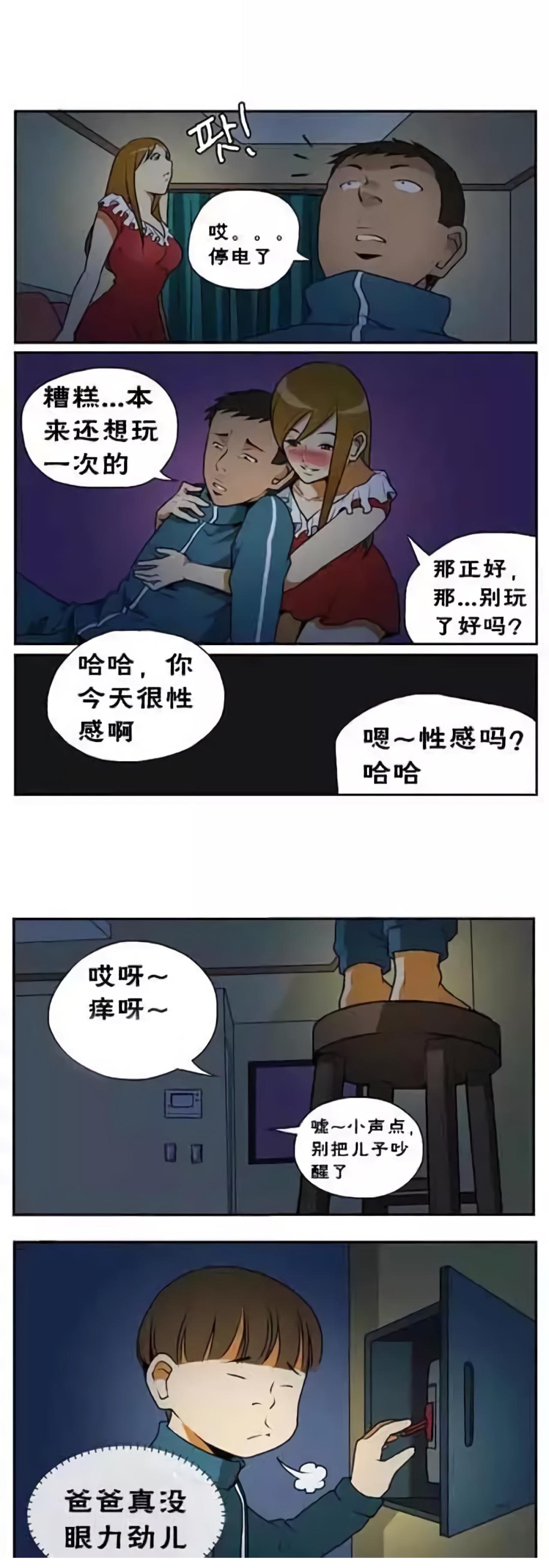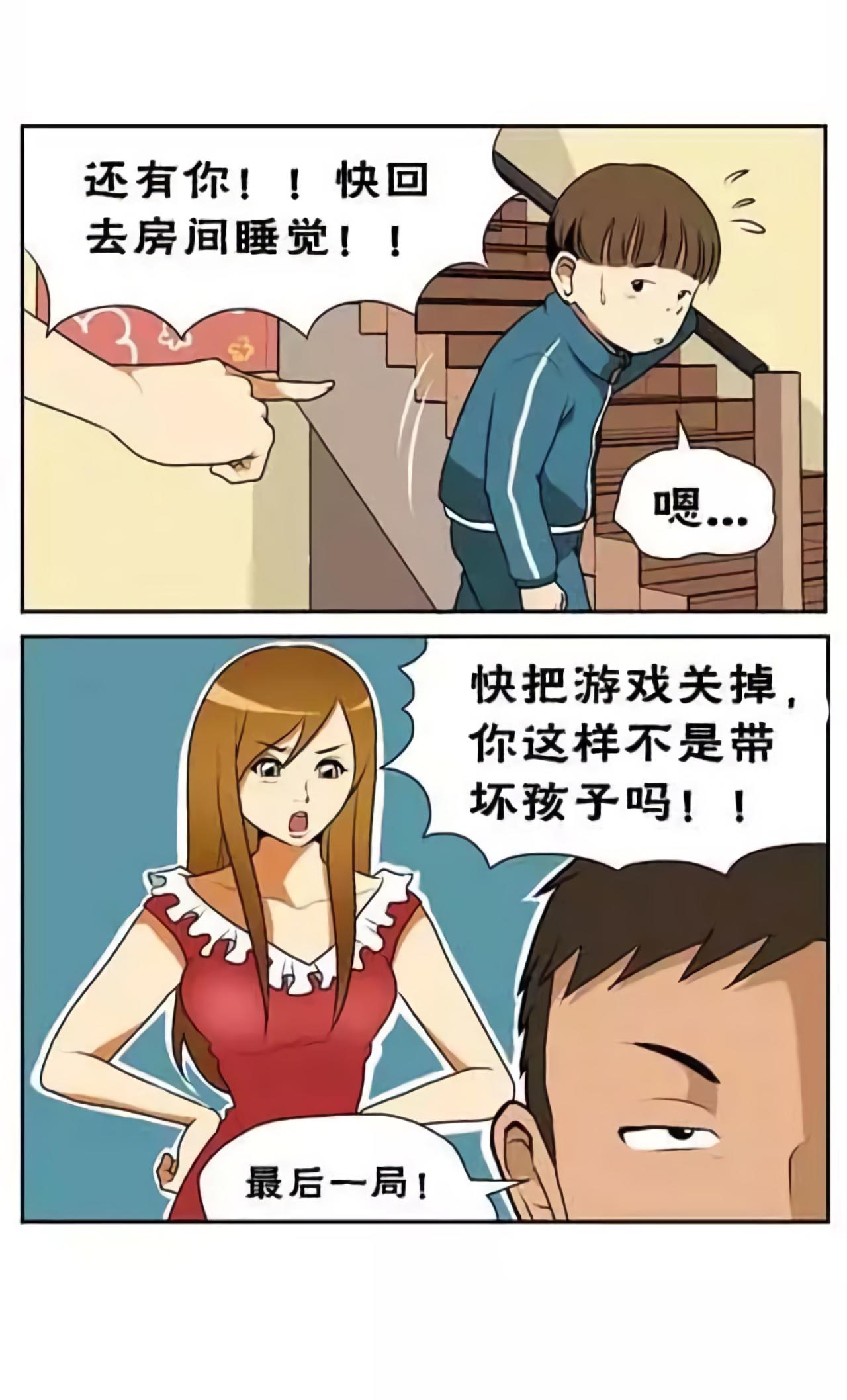 爸爸带着儿子在客厅玩游戏,被妈妈看到了,妈妈说时间很晚了,怎么还在玩游戏!爸爸说再玩一局,妈妈训斥爸爸,总带儿子玩游戏不好,这时,停电了!儿子说,爸爸真没有眼力见!