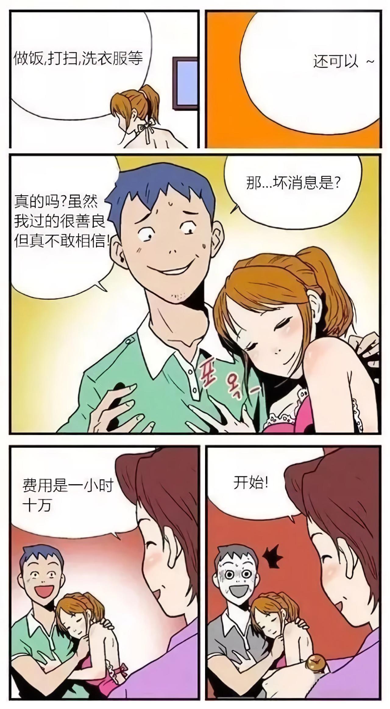 为了表彰小区里生活态度优秀的单身男,某社区开展了女朋友送上门活动,女孩可以做饭,打扫,洗衣服,还可以做男孩的女朋友,某单身男受宠若惊,但是费用是一小时十万,立即开始计费。天上不会掉馅饼哦。