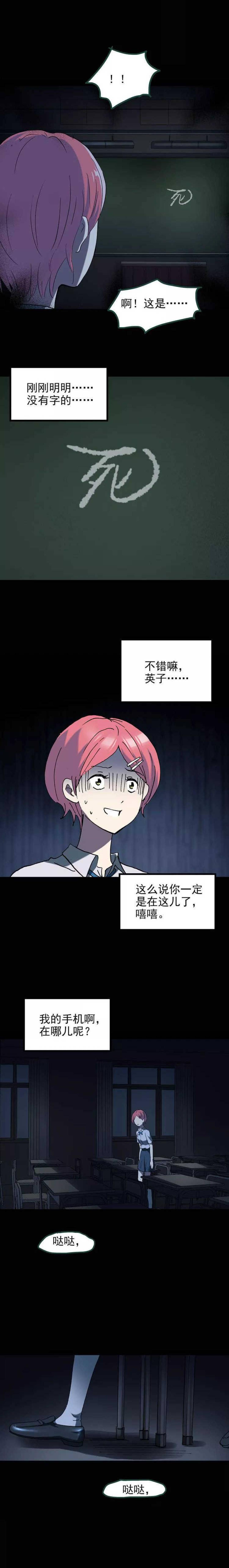 请注意往上看,当英子吓黎彤彤的时候,窗口有一双腿和鞋,而这个教室在顶层。而黎彤彤进教室的时候,英子并不在教室里,英子是在黎彤彤进教室找手机的时候,进教室门的,也就说黑板上的粉笔字很可能不是英子写的,而是另有其人。