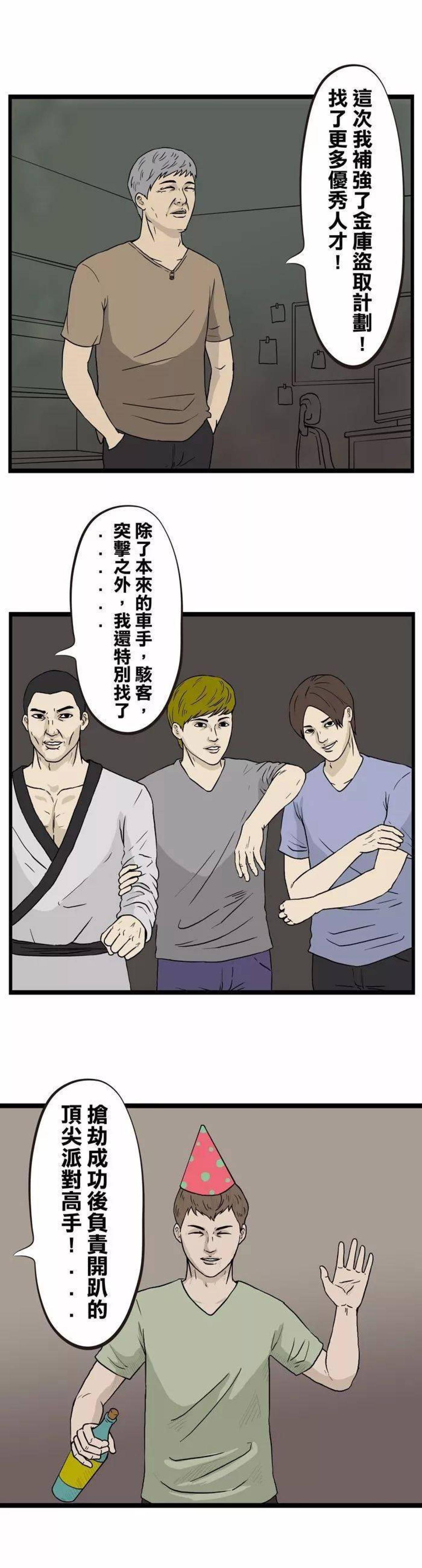 男人为了盗取金库,制定了庞大的计划,四处网络优秀人才,除了本来的车手,黑客和突击手之外,还找来了负责开庆功会的聚会达人,顶尖保险业务员和金融理财专员。当所有优秀人才聚齐以后,男人留下他们商量,自己回家去了。