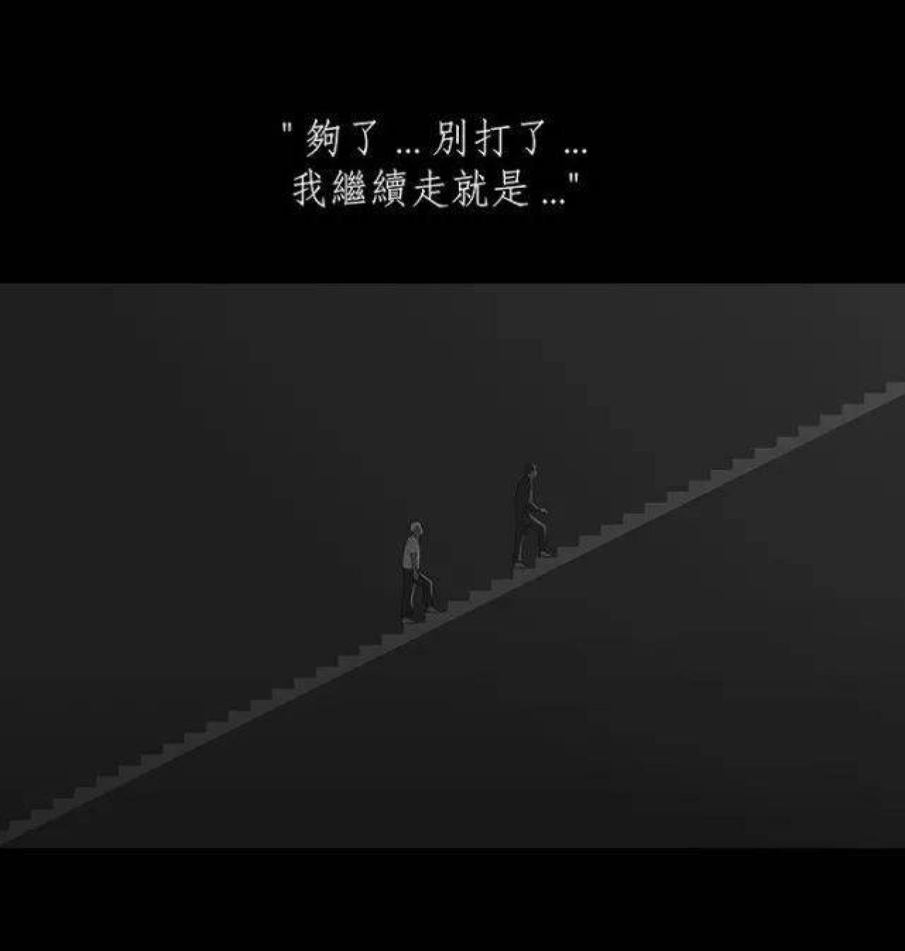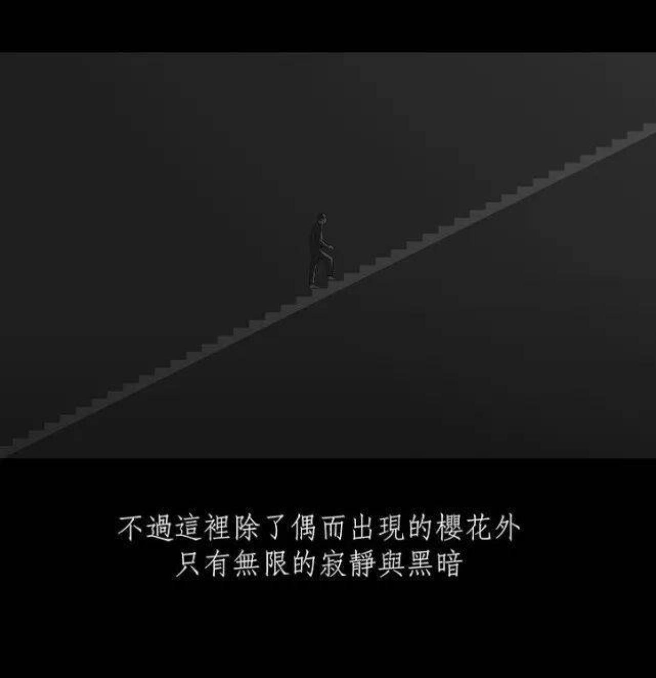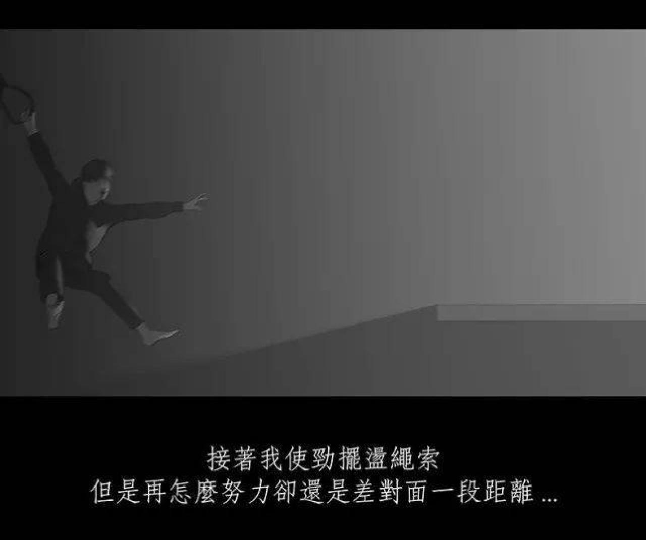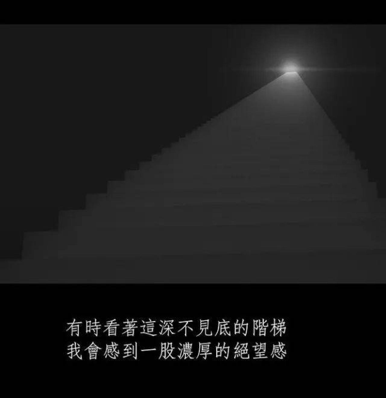 咳咳,男孩一直气喘吁吁,他失去了记忆,已经不知道自己爬了多久的阶梯。阶梯很长,尽头是什么都是未知,男孩只有不断地爬楼梯,稍有落后,就会被身后的怪力老人拍打。终于,男孩抵达了阶梯的尽头,横在阶梯与终点之间,竟然是一道万丈深渊,还有一个系着套圈的绳子。