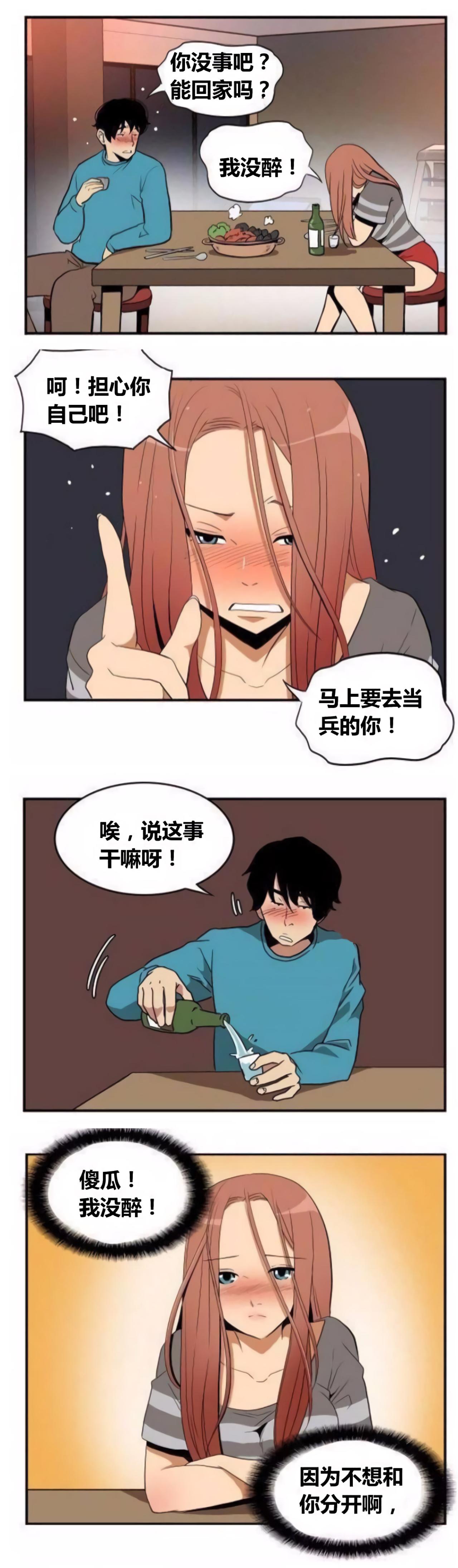 男孩要去当兵了,之前约女孩吃饭喝酒,两人都喝了不少酒,男孩担心女孩能不能自己回家,然而自己却不胜酒力,呼呼大睡,还需要让女孩背男孩回去。