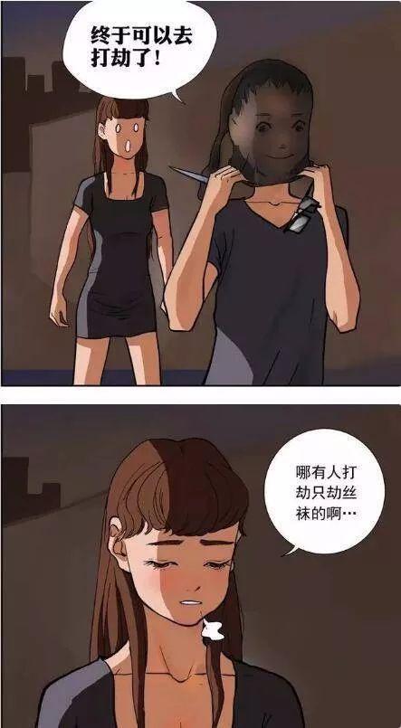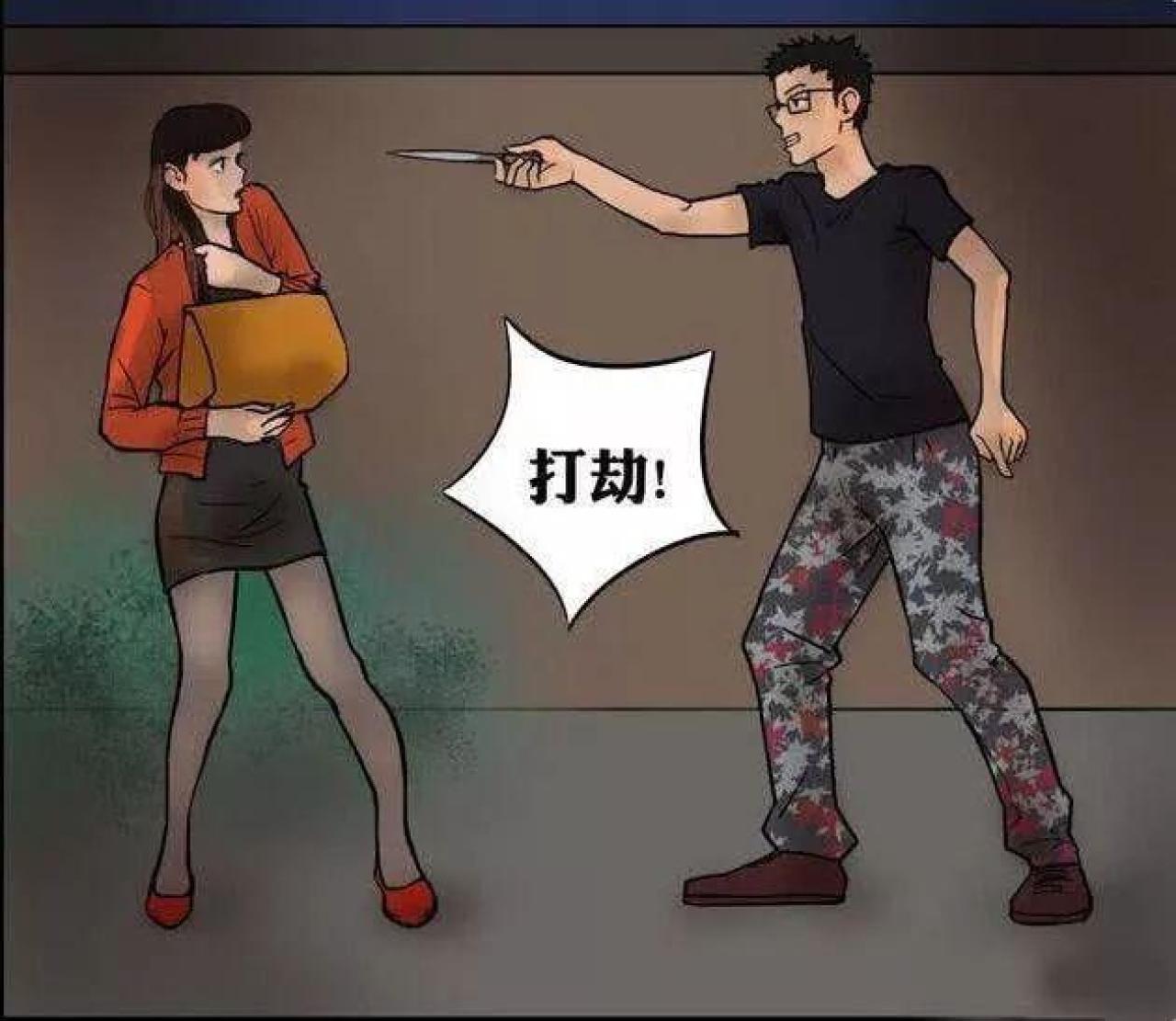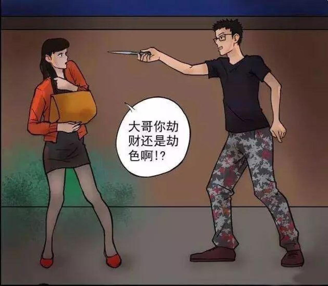 女孩下班回家的路上,遭遇男子持刀打劫,在男子的威胁下,女子把丝袜脱下来,于是男子把丝袜套在头上,心满意足地去打劫了,这下,没有人认得出了!