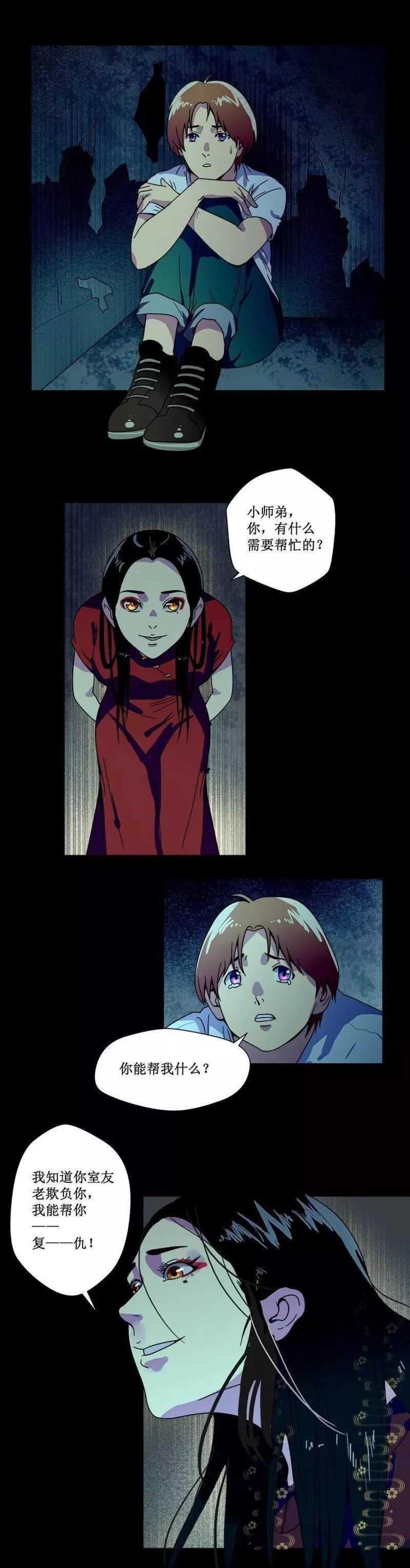 刘明住在4人间,同宿舍的学生都欺负他,陪看舍友鬼片,买全宿舍的早餐,洗所有人的衣服,成了他的日常便饭。只因为一次买错碟片,舍友将刘明锁在女厕所里整整一夜,而这个厕所里,据说有一位善解人意的女鬼学姐。第二天,刘明比以前更加殷勤地讨好舍友,然而舍友却提出要玩一个请鬼游戏。