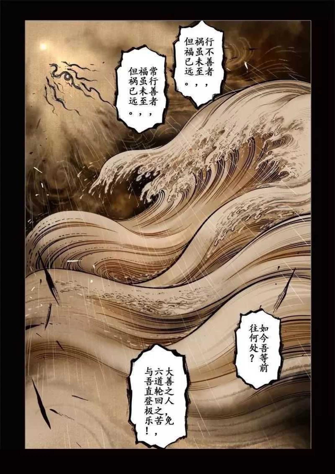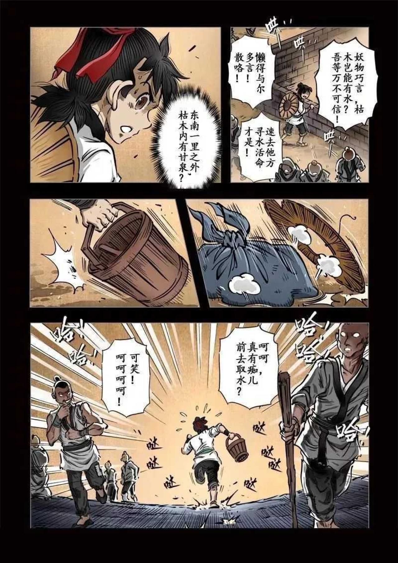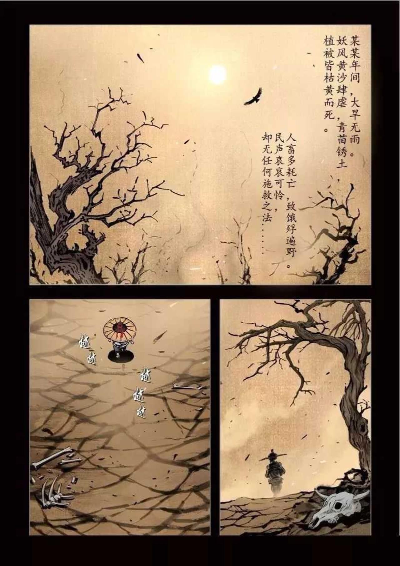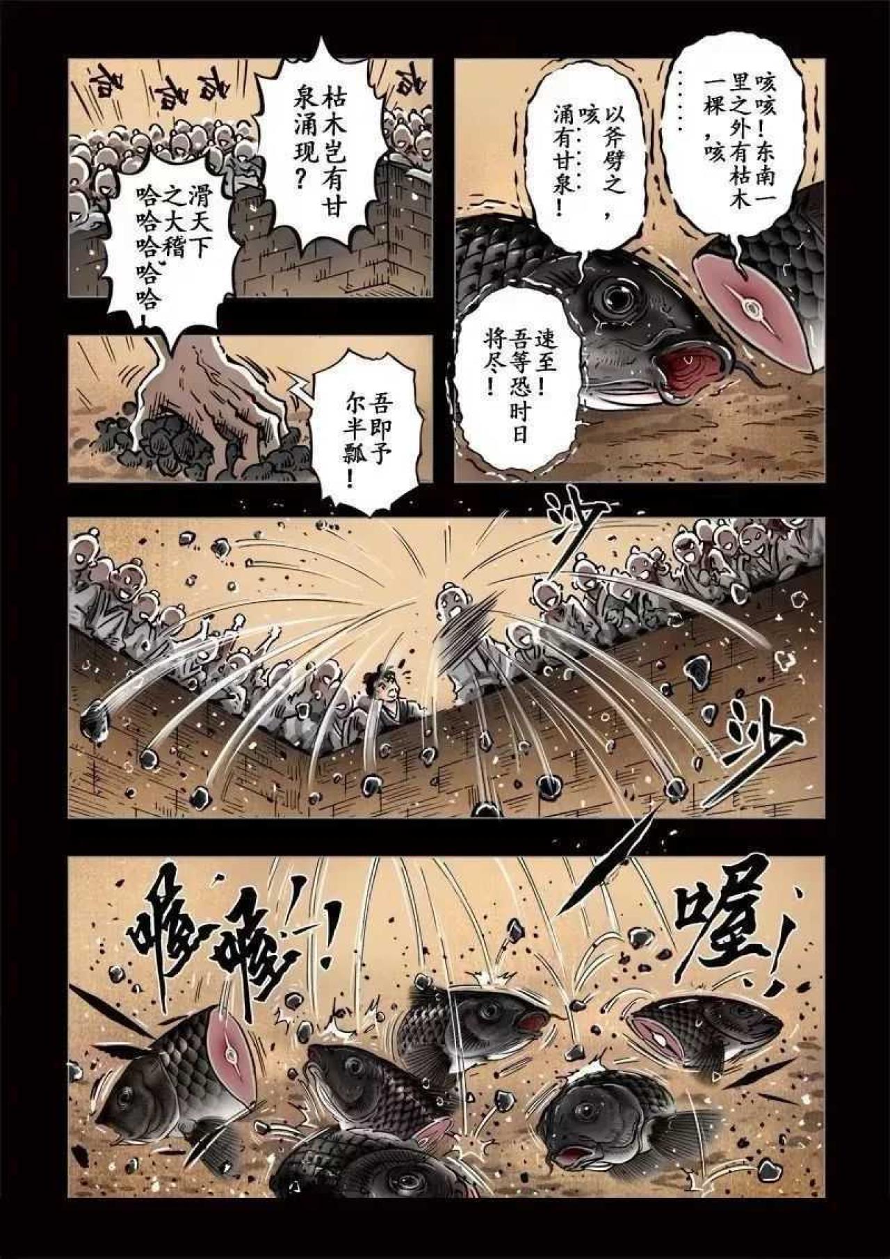 某某年间,大旱无雨,妖风黄沙肆虐,青苗锈土,植被皆枯黄而死。少年路过寺庙,见放生池旁人员聚集,贴近观察,却见池中尽是半腰鱼,奄奄一息,说枯木有水,祈求众善者给予半瓢弱水,然众人不信,更有落井下石者。少年不顾嘲笑,取水救鱼。常行善者,福虽未至,但祸已远。天机不可泄露。