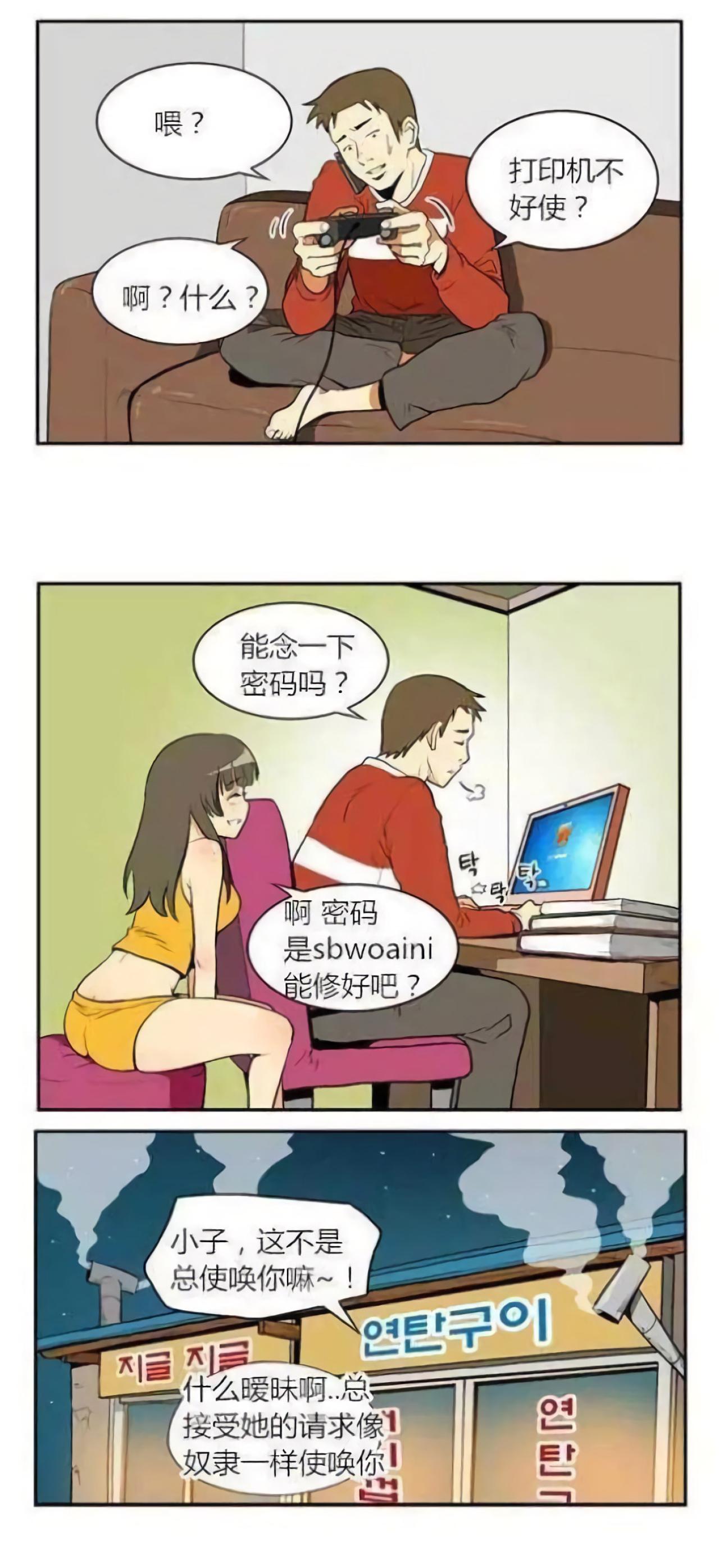 男生正在打游戏,女生家里的打印机不好使,请男生去修。男生不情愿地放下游戏,去女生家修电脑。电脑有开机密码,女生说电脑密码是,S.B.我爱你。又一天,男生正在吃饭,女生又打电话来,说电脑坏了,男生请教他的哥哥,为什么女生总是使唤自己。哥让他跟女生说自己去请修理师,于是女生在电脑上打S.B.